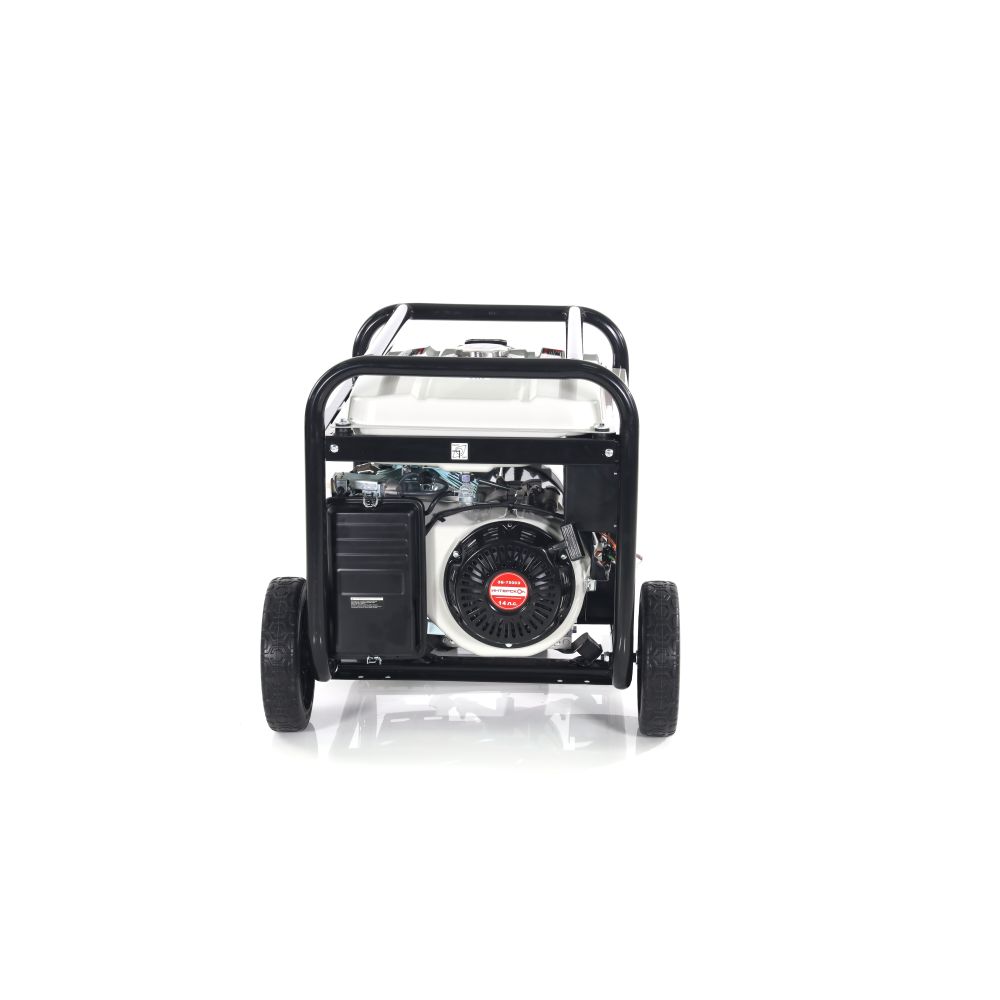 - Бензогенератор оснащен транспортировочными колесами и ручками.
