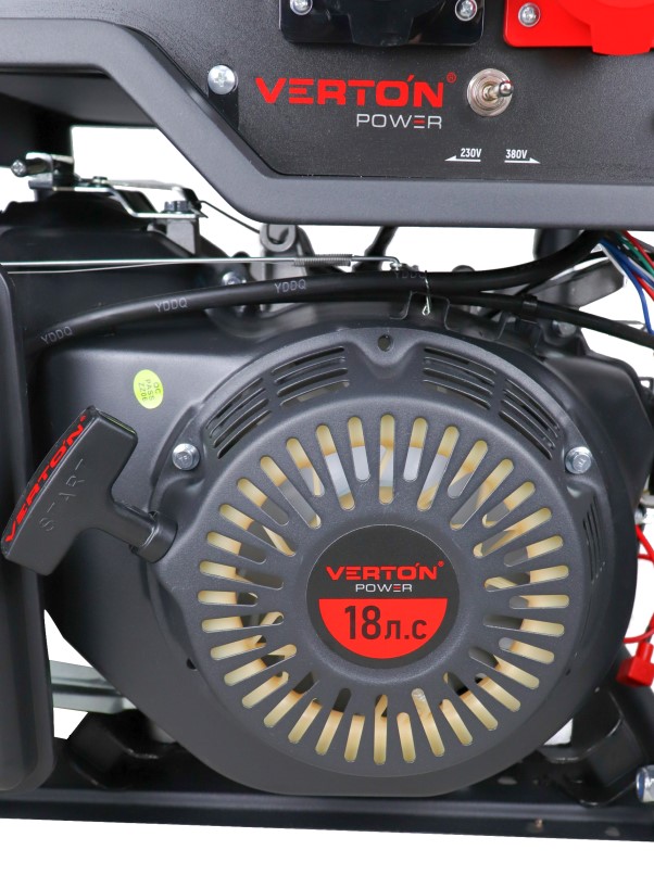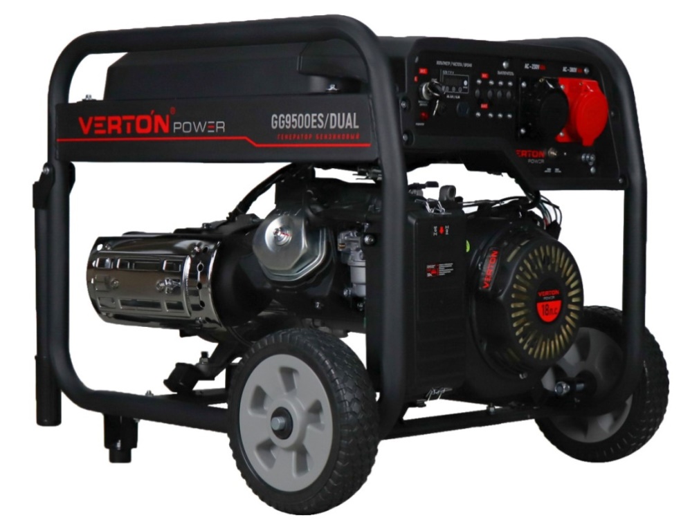 Генератор бензиновые VERTON POWER оснащен надежным двигателем с увеличенным ресурсом, медной обмоткой альтернатора и электро-запуском, транспортировочными рукоятками и обрезиненными колесами.