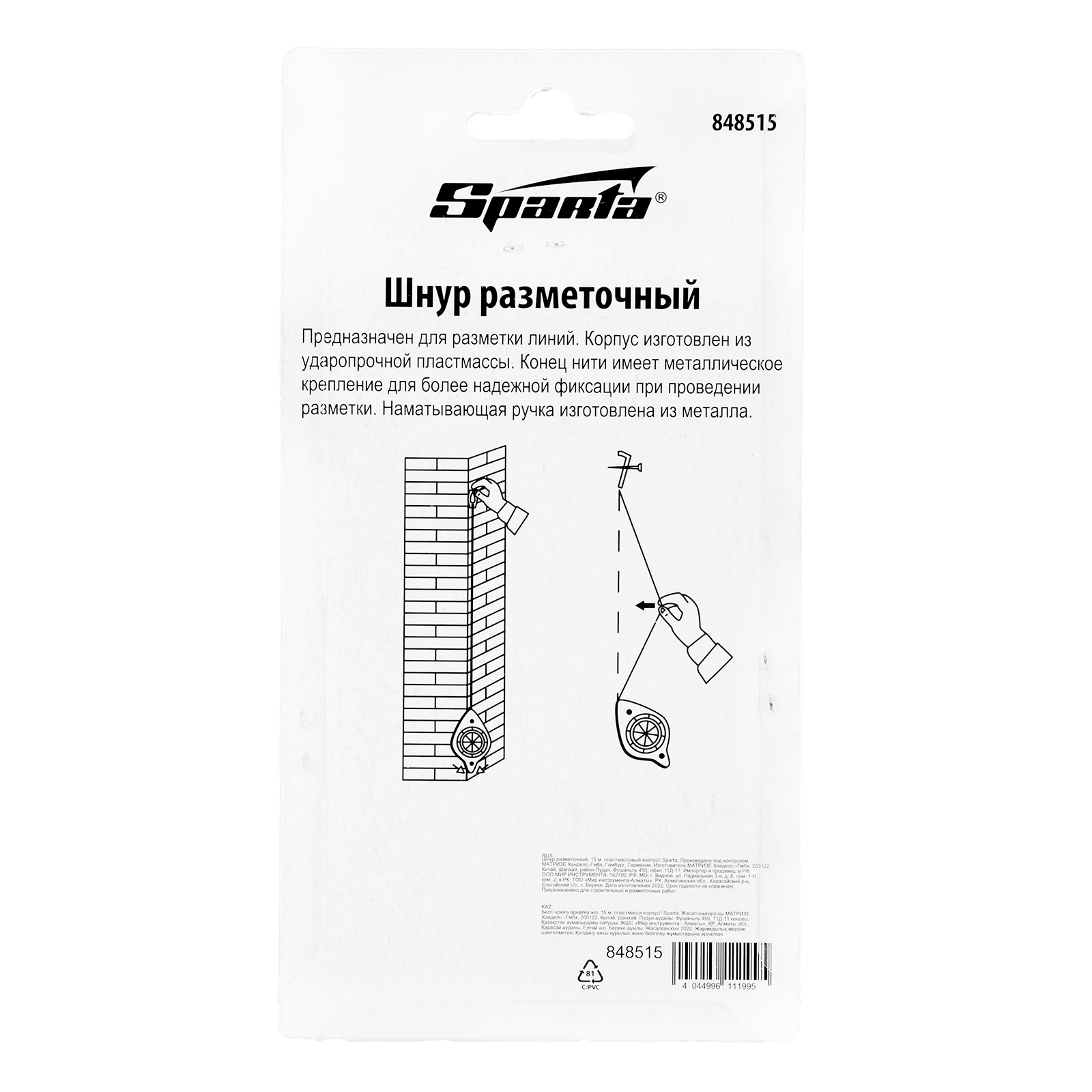 Разметочный шнур Sparta 848515 длиной 15 м, в пластмассовом корпусе, будет полезен во время проведения строительных, ремонтных и других работ, где требуется особая точность. Используется для нанесения горизонтальной и вертикальной разметки.
