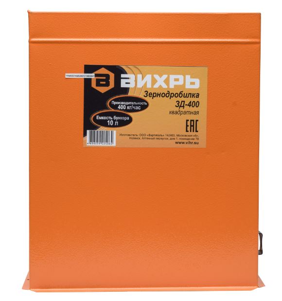 Измельчитель зерна ВИХРЬ ЗД-400 - модель зернодробилки повышенной производительности для личного подсобного хозяйства и фермерских хозяйств среднего размера. Применяется для дробления сухих сыпучих кормов для сельскохозяйственных животных: фуражного зерна, масличных культур, травяных гранул, комбикорма и т.д.