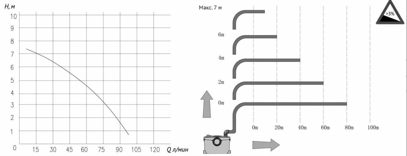 - Максимальная горизонтальная длина сброса — 80 м