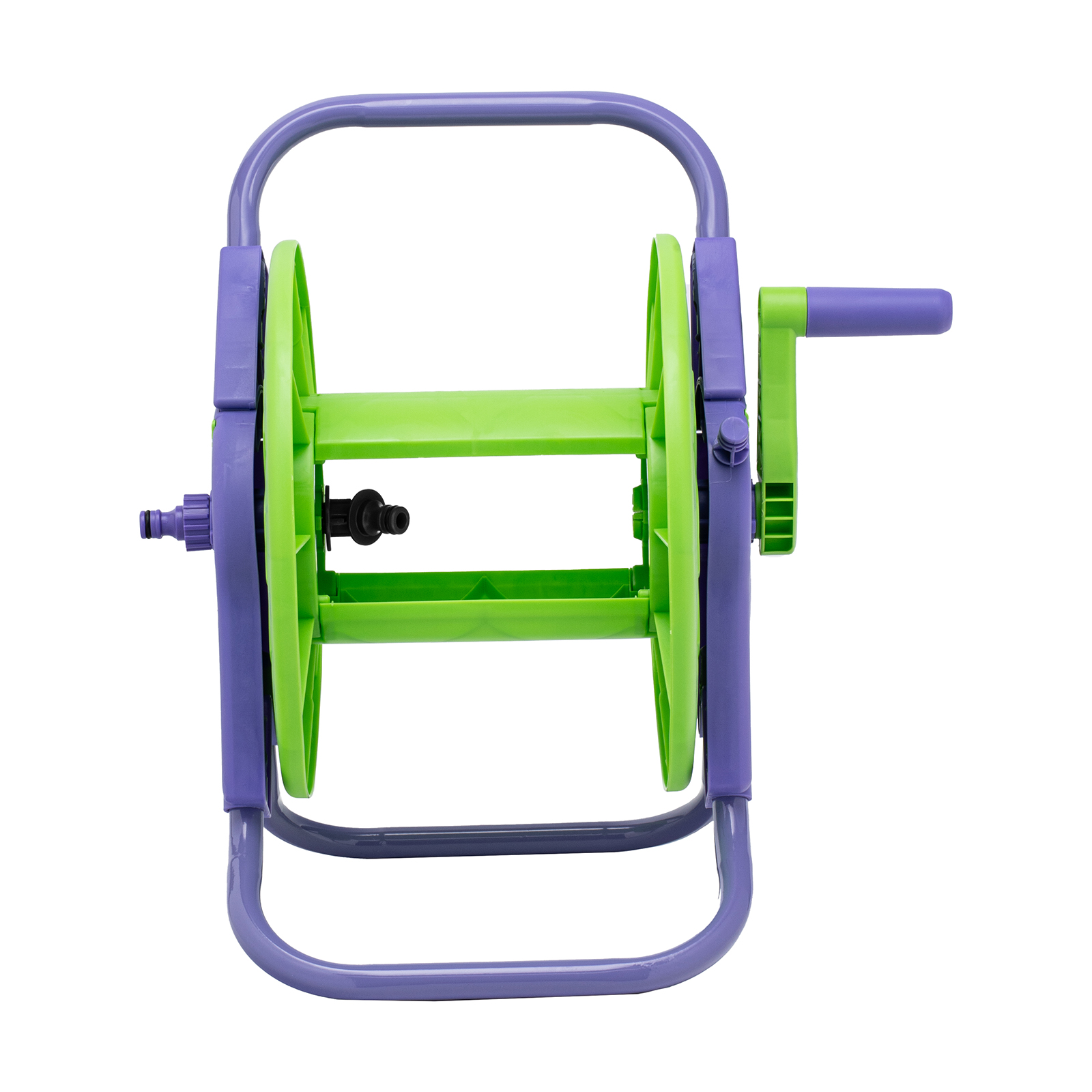 - Устойчивость — опорные рамы не дают катушке опрокинуться при размотке шланга, что позволяет производить полив даже на неровных участках.