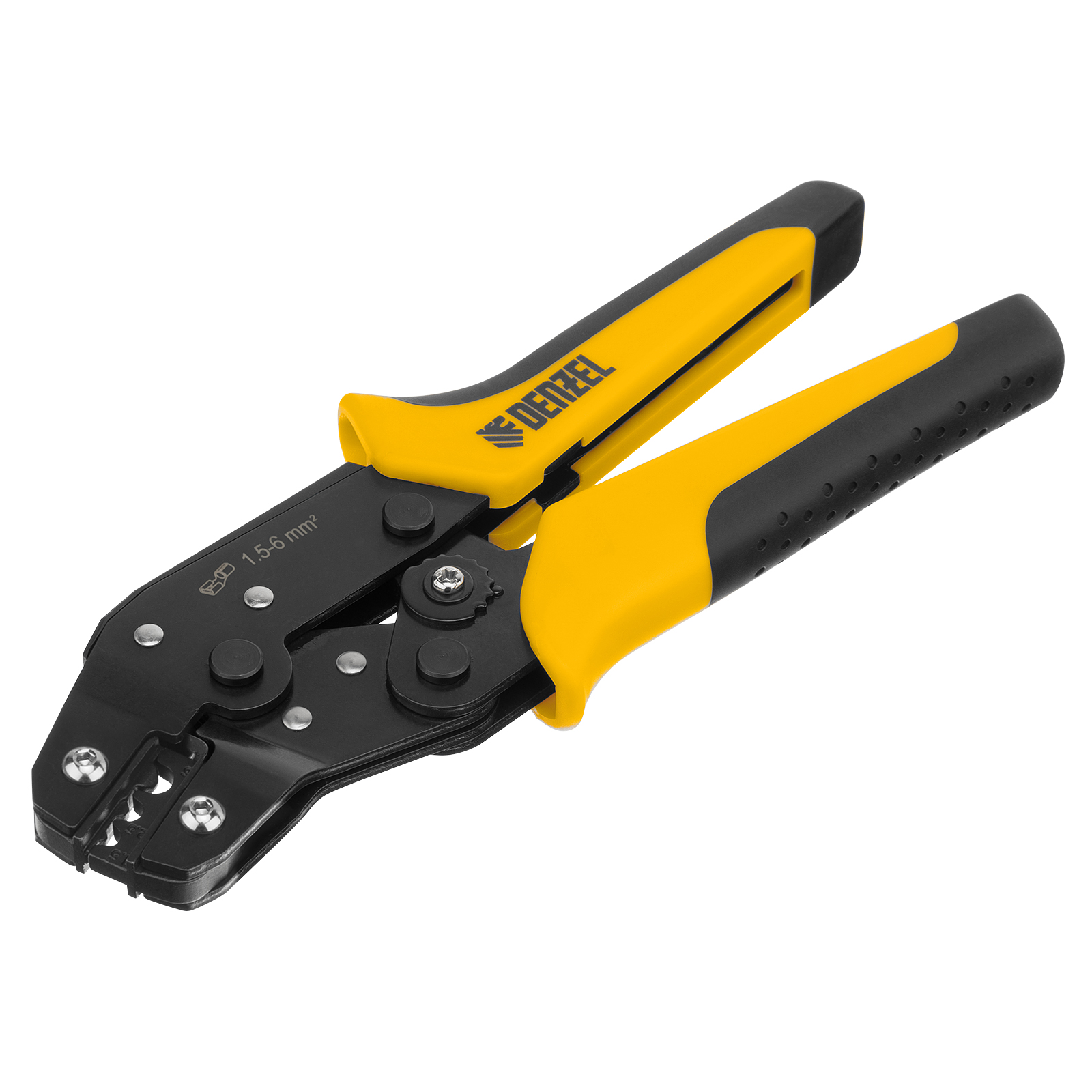 Клещи Denzel 17746 предназначены для обжима неизолированных кольцевых наконечников НК и вилочных НВ, разъемов плоских РП сечением 1,5-6 мм². Инструмент пригодится частным и профессиональным мастерам при проведении электромонтажных работ.