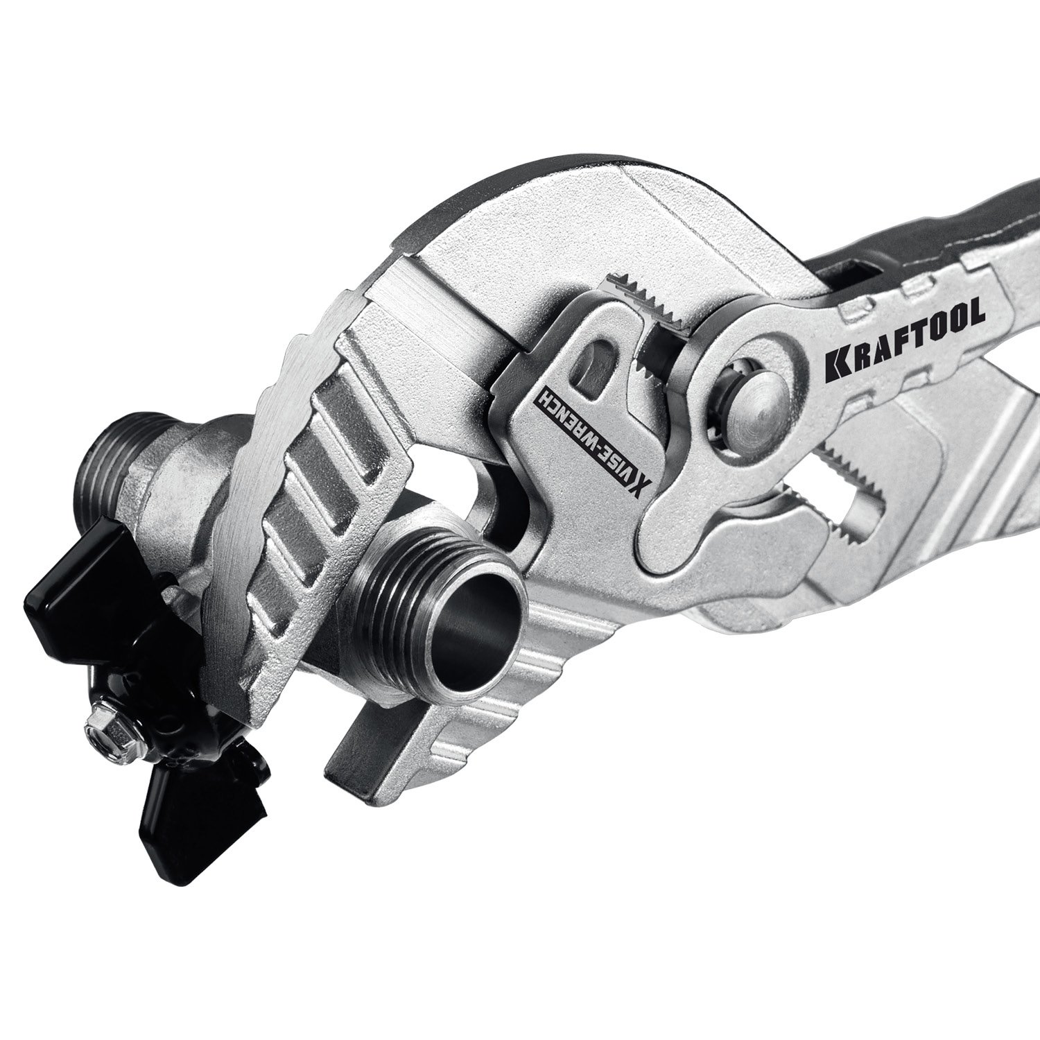 Клещи переставные-гаечный ключ KRAFTOOL – профессиональный инструмент с постоянно параллельными губкам. Заменит набор из всех ключей и обеспечит полную сохранность хромированного крепежа.