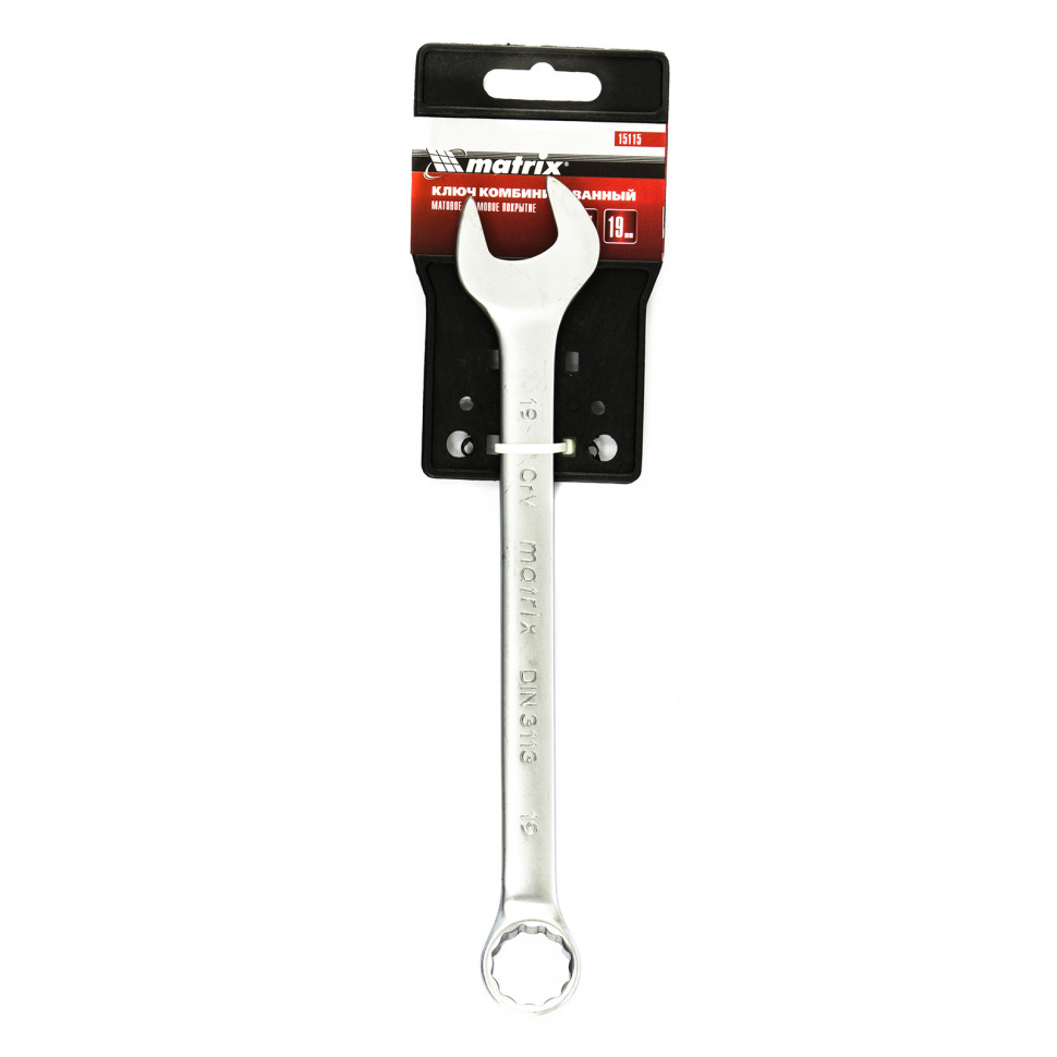 Ключ комбинированный Matrix из стали CrV, 19 мм, с покрытием «матовый хром», пригодится при проведении ремонтных работ дома или в гараже. С его помощью можно осуществлять быстрый монтаж и демонтаж крепежных элементов. Кольцевой зев обеспечивает удобство работы благодаря углу наклона 15 градусов относительно плоскости инструмента.