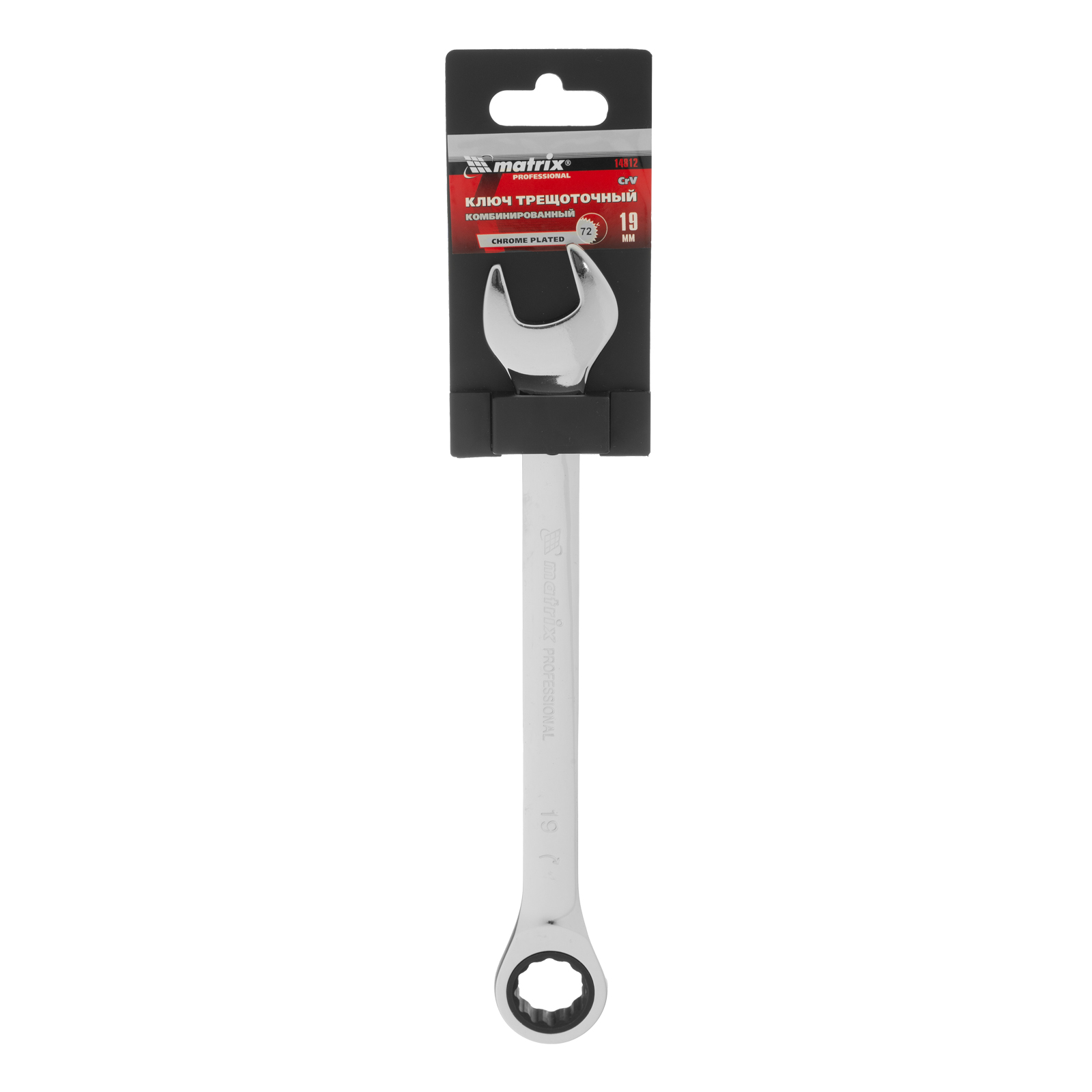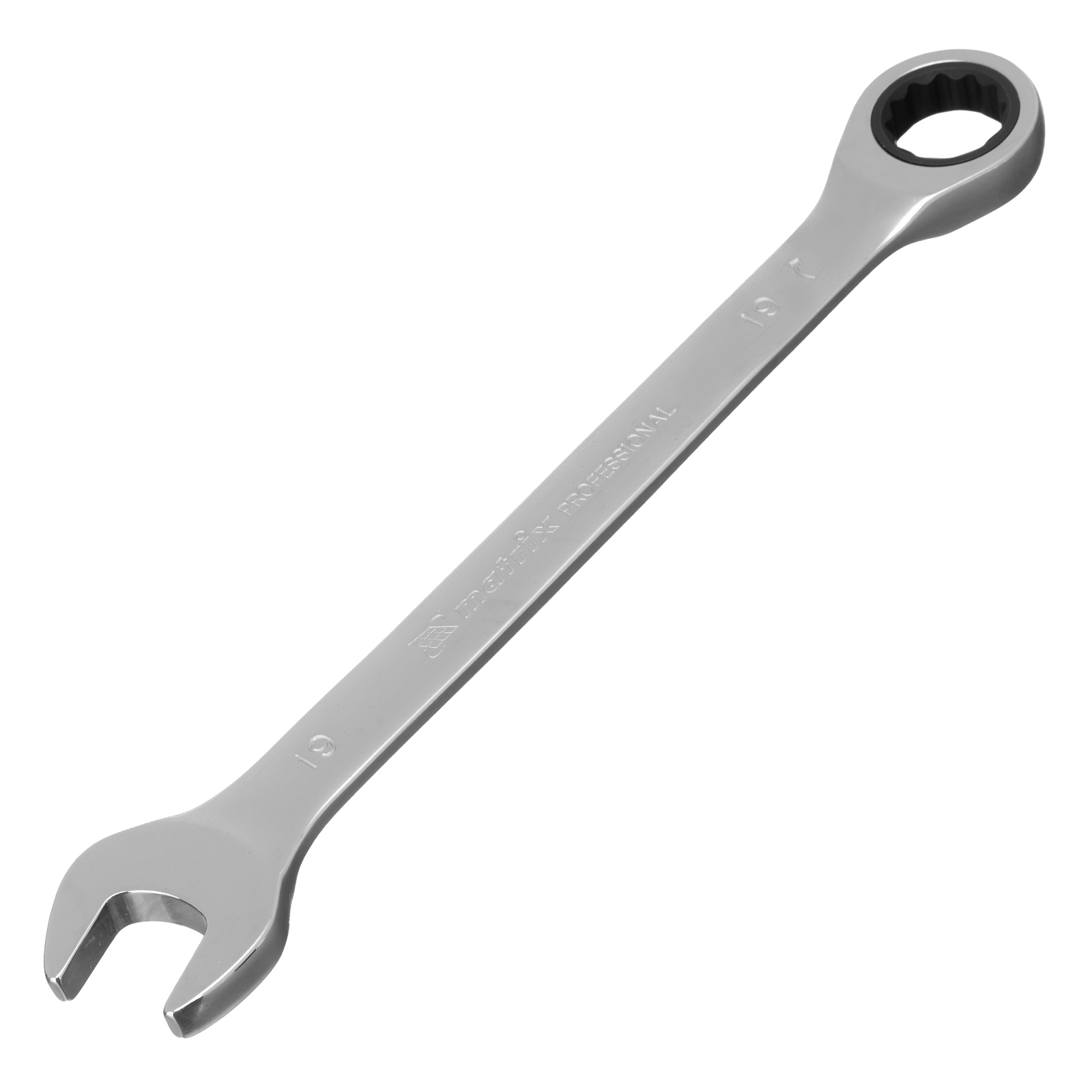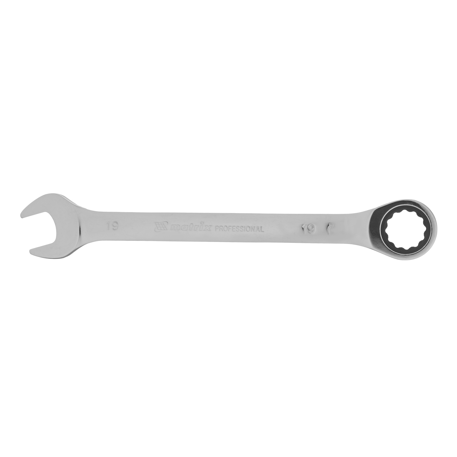 Комбинированный трещоточный ключ Matrix из стали CrV, с покрытием «зеркальный хром», 19 мм, позволяет быстро откручивать и закручивать болты и гайки. Рожковую часть удобно использовать там, где нет возможности полного охвата детали, а трещоточный механизм повышает удобство работы в труднодоступных местах.