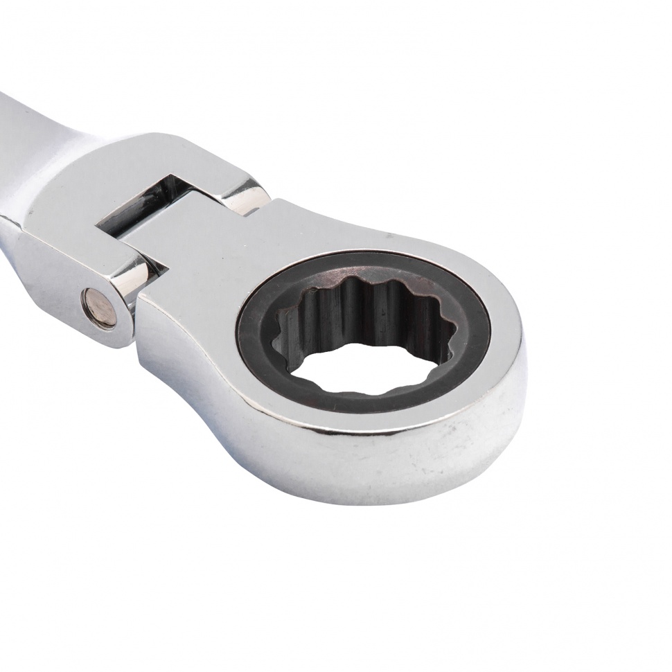 Ключ гаечный комбинированный с трещоткой и шарниром предназначен для эффективного откручивания или закручивания болтовых соединений в труднодоступных местах. Наличие шарнира позволяет менять угол наклона ключа относительно его рабочей накидной части (0–180 градусов).