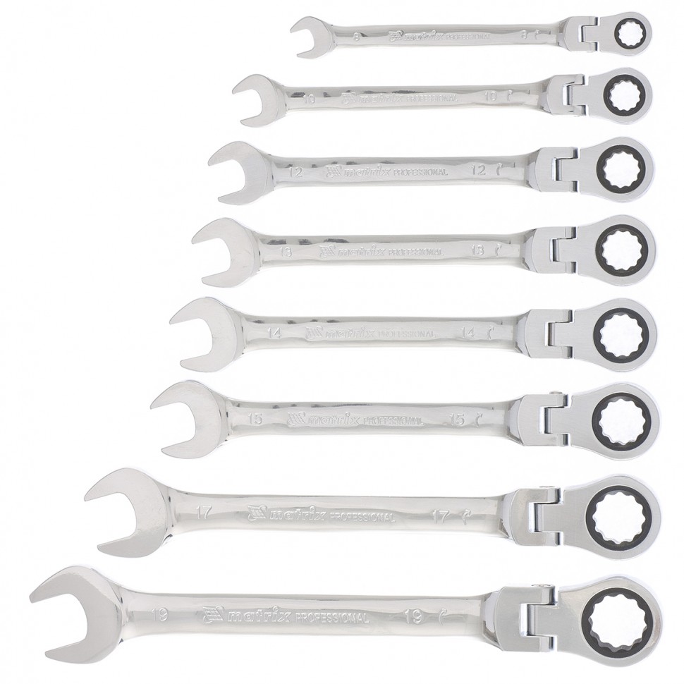 - Наличие шарнира позволяет менять угол наклона ключа относительно его рабочей накидной части (0–180 градусов).