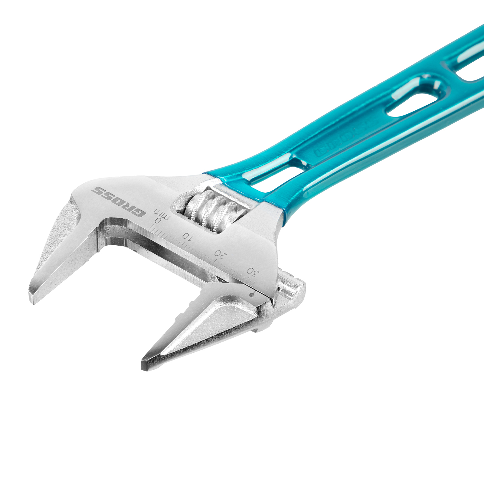 Облегченный разводной ключ Gross 15558 длиной 200 мм, из стали CrV, подходит для работы как с мелкими, так и с крупными крепежными элементами. Максимальный диапазон раскрытия зева составляет 32 мм. Конструкция инструмента усилена благодаря дополнительным ребрам жесткости на рукоятке. Ребристая рабочая поверхность губок обеспечивает надежный захват деталей и повышает точность работы.