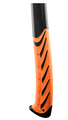 Особое внимание уделено созданию надежного крепления лезвия, которое жестко фиксирует топор в корпусе, предотвращая риск соскакивания и выпадения клинка при сильных нагрузках. Прочная рукоятка выполнена из фибергласса и снабжена противоскользящим резиновым покрытием, что обеспечивает надежный захват.