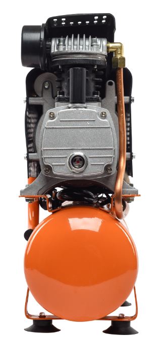 Предусмотрено небольшое окно для наблюдения за уровнем масла и клапан для слива конденсата, что упрощает обслуживание. Опорные ножки придают устойчивость, а удобная ручка облегчает транспортировку.