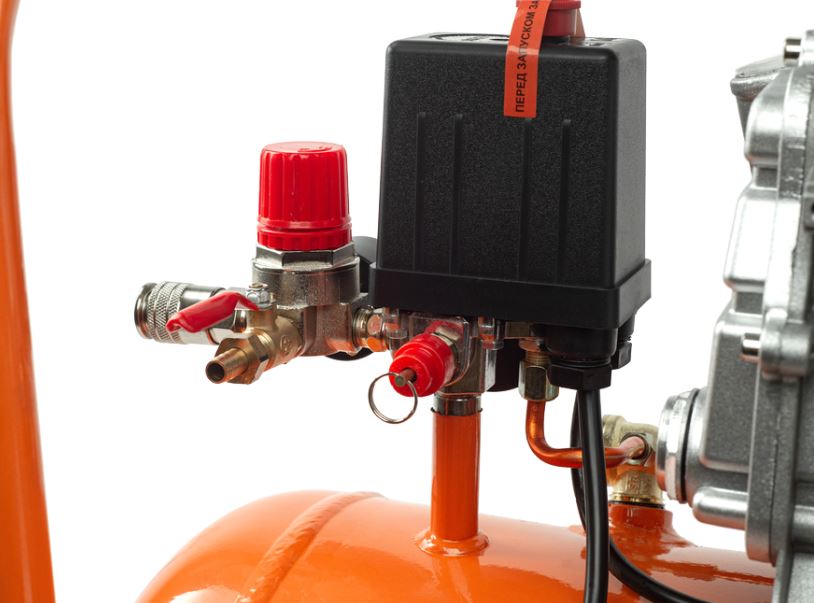 Безопасность работы обеспечивается наличием предохранительного механического клапана высокого давления, который предотвращает превышение допустимого уровня давления. Для удаления конденсата предусмотрен дренажный клапан, что помогает продлить срок службы устройства. Электромеханический блок управления давлением в ресивере автоматически поддерживает необходимое давление, регулируя работу компрессора.