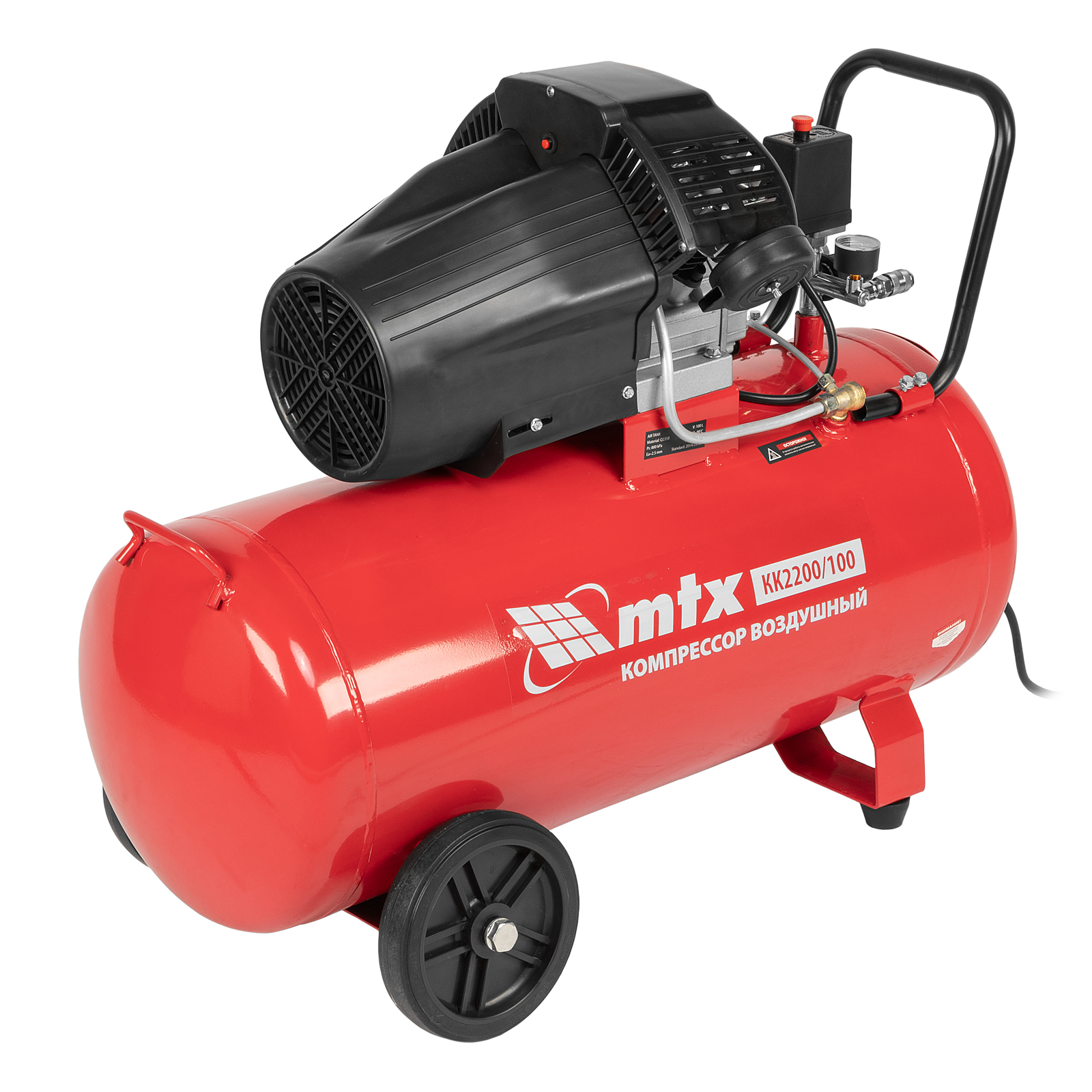 Масляный воздушный компрессор MTX KK-2200/100 58033 мощностью 2,2 кВт, с прямым приводом, оснащен ресивером объемом 100 л, рассчитан на давление до 8 бар и обеспечивает производительность на уровне 350 л/мин. Предназначен для обеспечения работоспособности пневматического инструмента: гайковерта, шлифовальной машины, шуруповерта, краскораспылителя и т.д. Мощный и производительный компрессор будет полезен на строительной площадке, в гараже, на предприятии автосервиса.