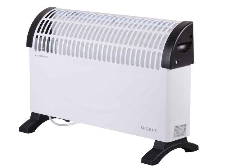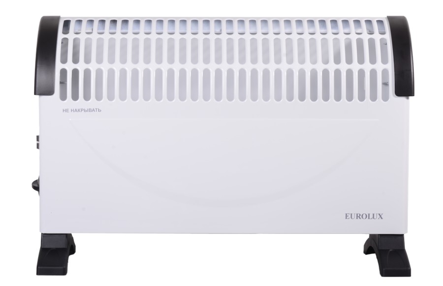 Электроконвектор Eurolux OK-EU-1500C работает без вентилятора за счет конвекционного переноса тепла. Воздух свободно циркулирует внутри корпуса обогревателя: через нижние заборные решетки поступает холодный, а сверху выходит нагретый. Корпус конвектора остается комфортной температуры и не вызывает ожогов при случайном касании.