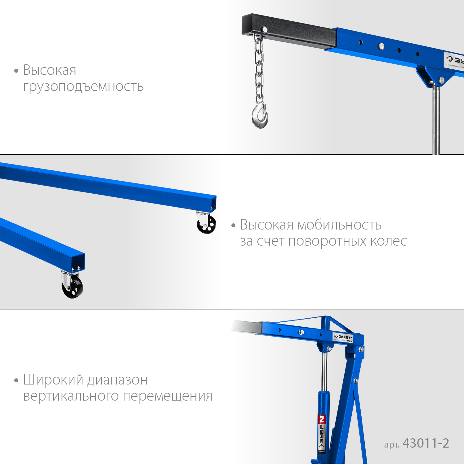 Кран гидравлический ЗУБР КГС-2, 2 т, 25 - 2200 мм