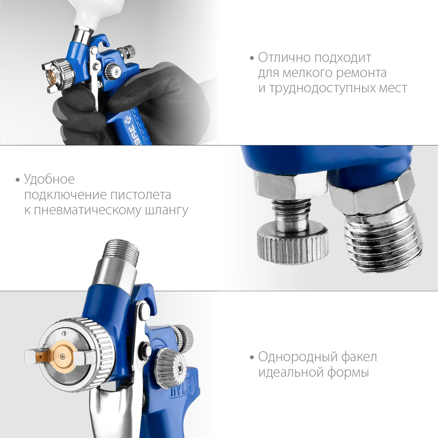 Профессиональный пневматический краскопульт ЗУБР ″ПРО 150 Мини″ - надежный инструмент для окрасочных работ в мастерских на специализированных предприятиях, отличающийся точностью и долгим сроком службы