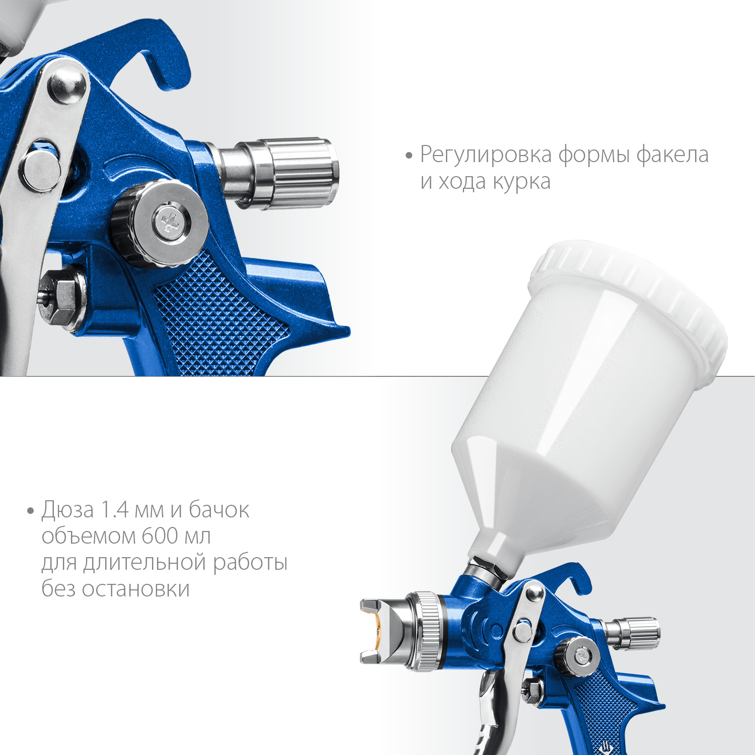 - Регулировка формы факела, входного давления и хода курка