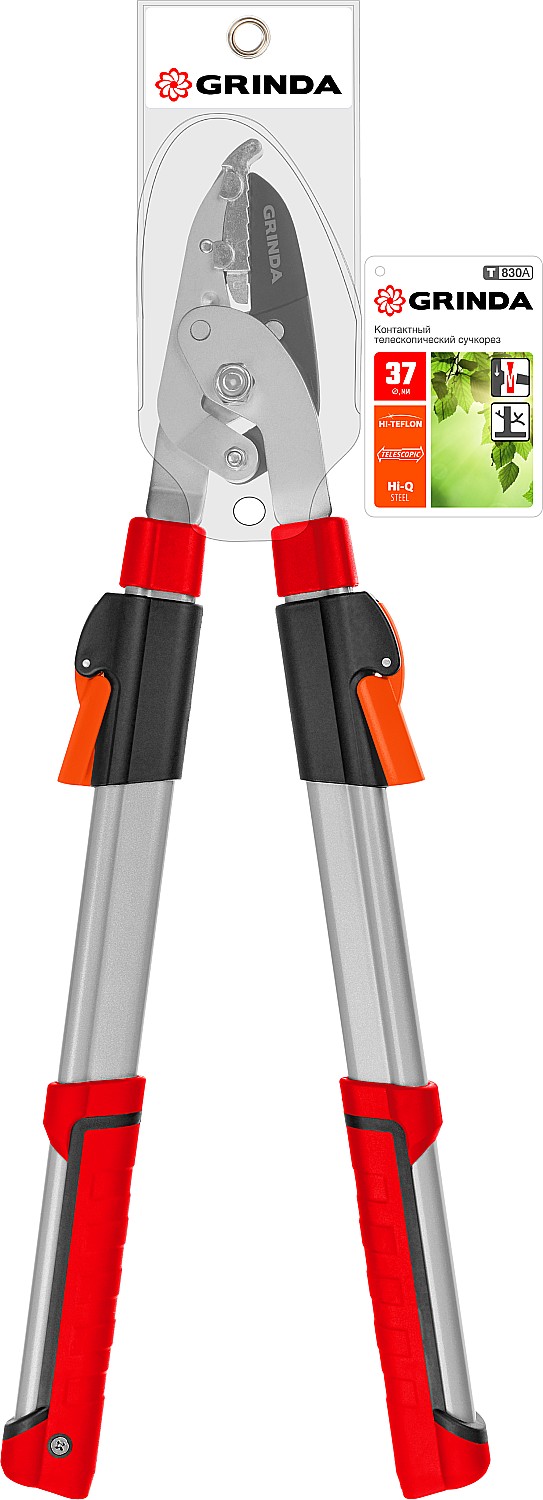 Контактный телескопический сучкорез GRINDA T-830A 424591 подходит для обрезки сухих твердых ветвей.