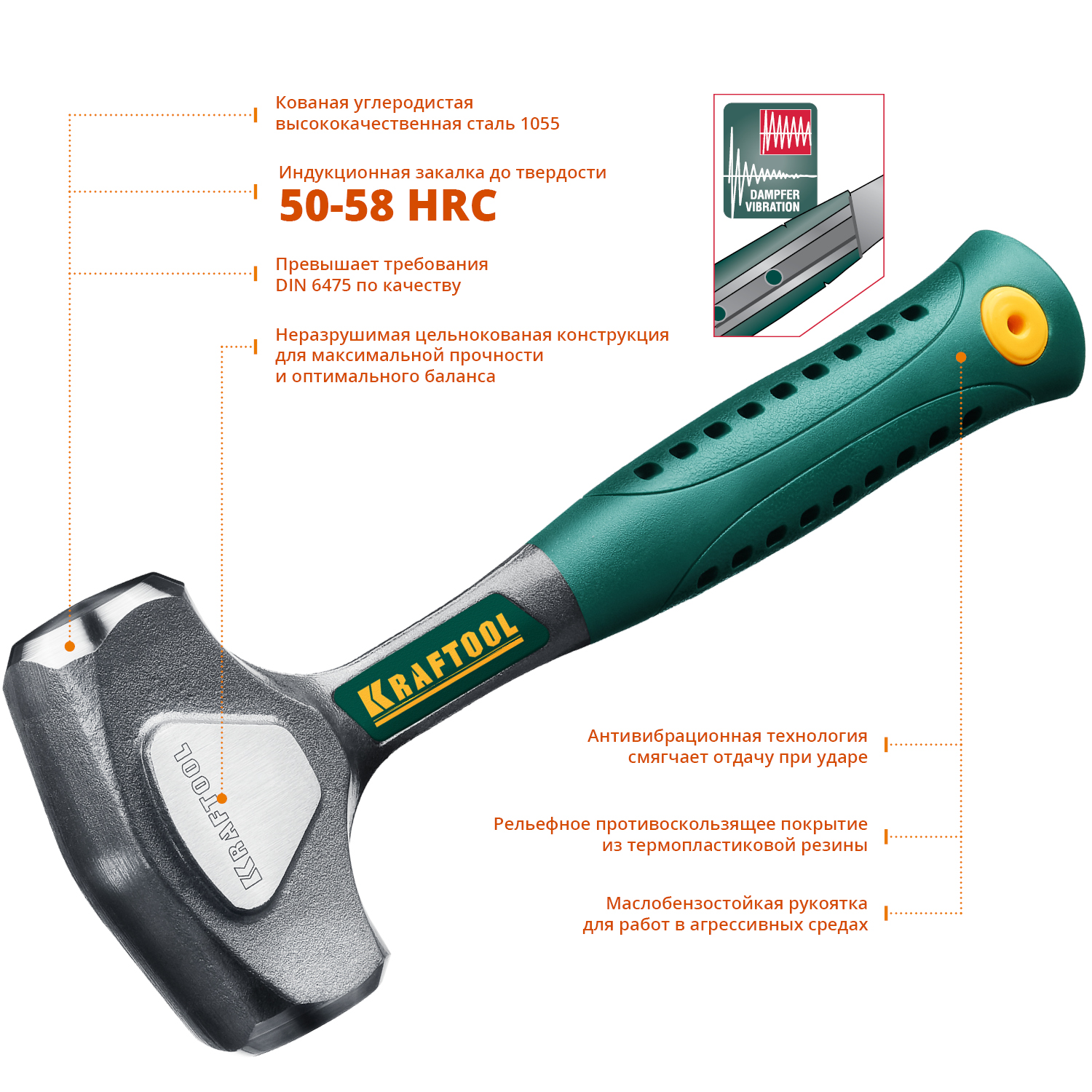 Профессиональный цельнокованый ударный инструмент обладает максимальной прочностью и обеспечивает самый длительный срок службы.