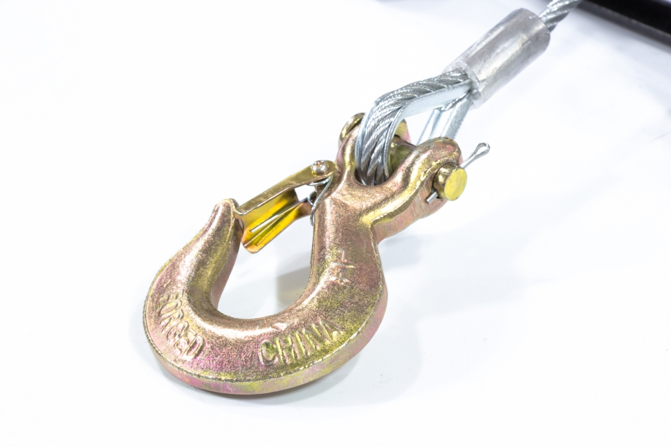 - Крепкое сцепление — зацепной крюк с защитной скобой надежно фиксирует груз без риска его соскальзывания.