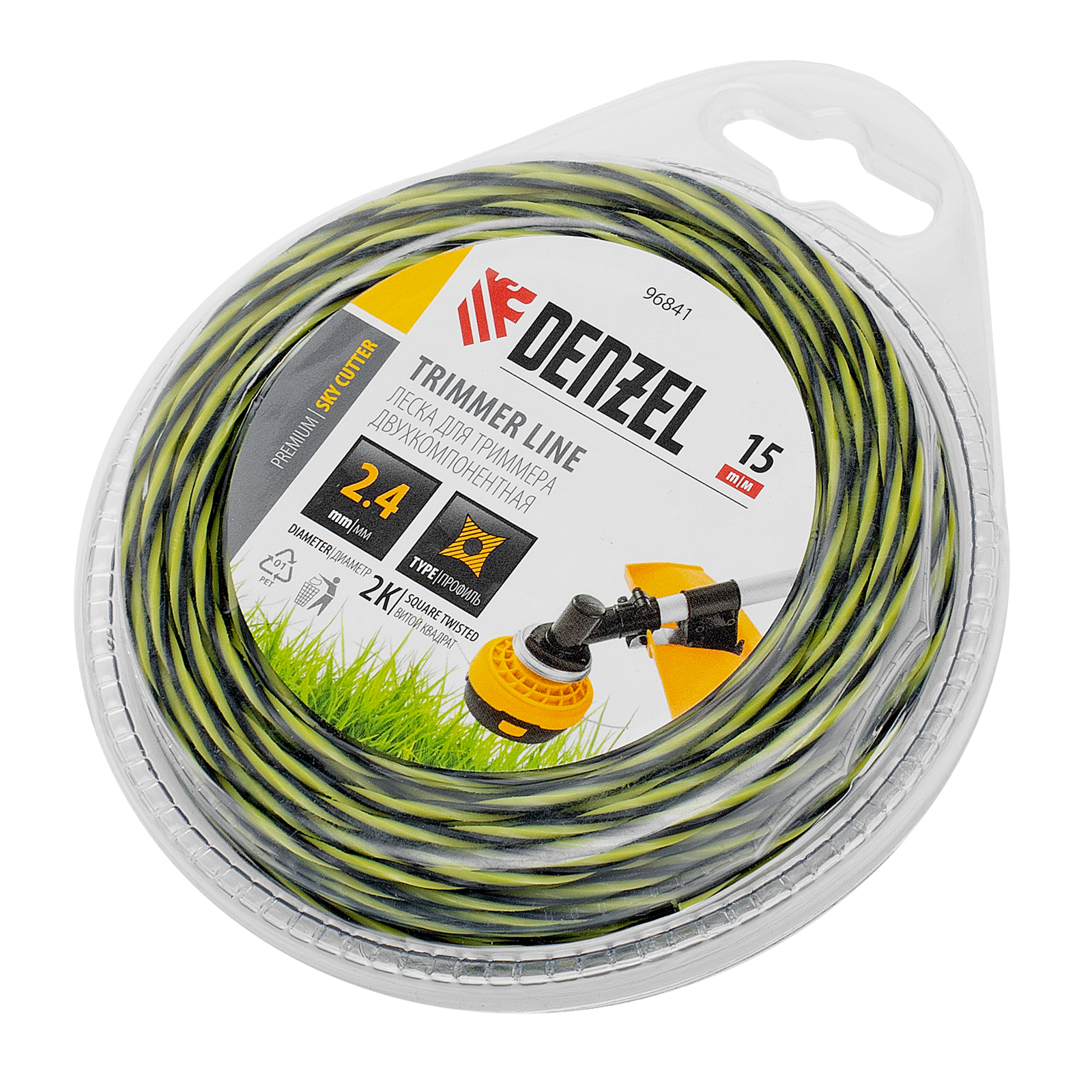 Витая квадратная леска для триммера Denzel SkyCutter 96841 с двухкомпонентной структурой, 2,4 мм х 15 м, в блистере, — расходный материал для электротриммеров и бензиновых триммеров с объемом двигателя 25-52 см3. Благодаря агрессивному профилю леска обеспечивает высокую скорость работы, эффективно скашивая густую траву, сорняки, а также растения с жесткими стеблями. Пригодится владельцам дачных участков.