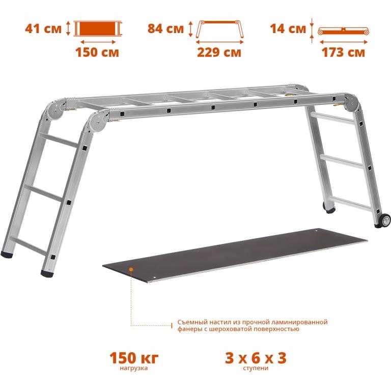 Лестницы СИБИН предназначена для выполнения различных хозяйственных работ. Надежная конструкция в сочетании с высококачественными материалами обеспечивают легкость и удобство в эксплуатации
