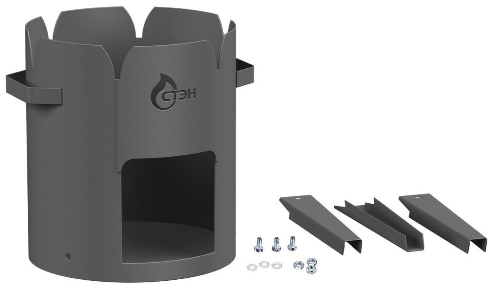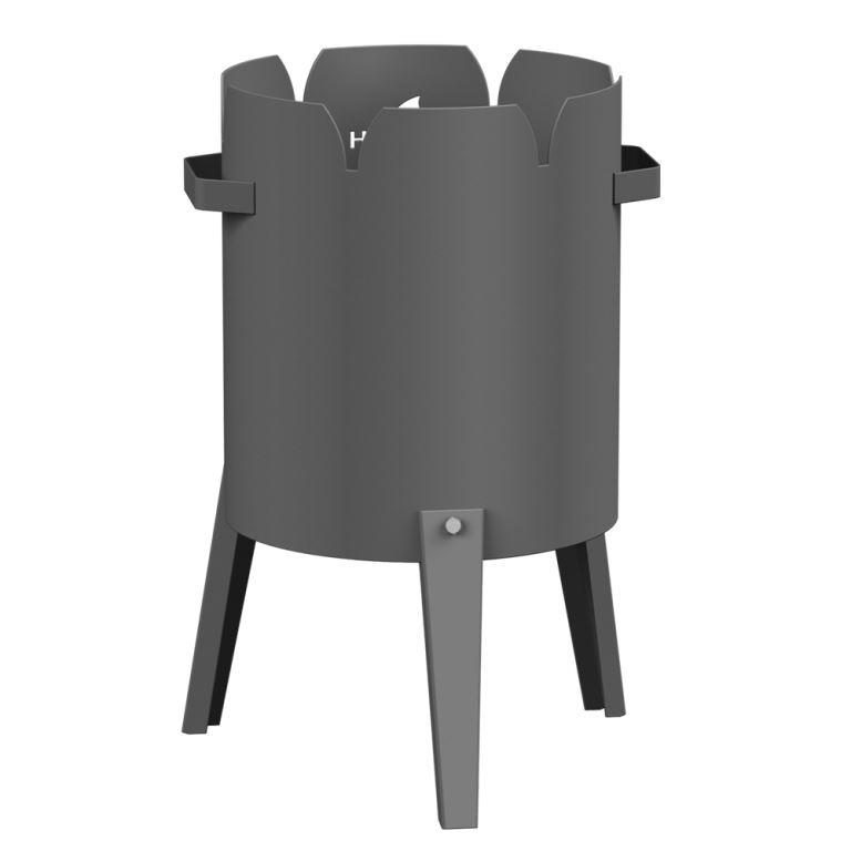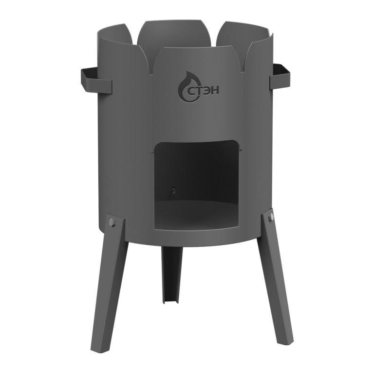 Простая и надежная переносная печь для приготовления пищи в казане. Может использоваться как уличный очаг. Конструкция печи - разборная, из листовой стали толщиной 3 мм. Ёмкость используемых казанов: 6-10 литров