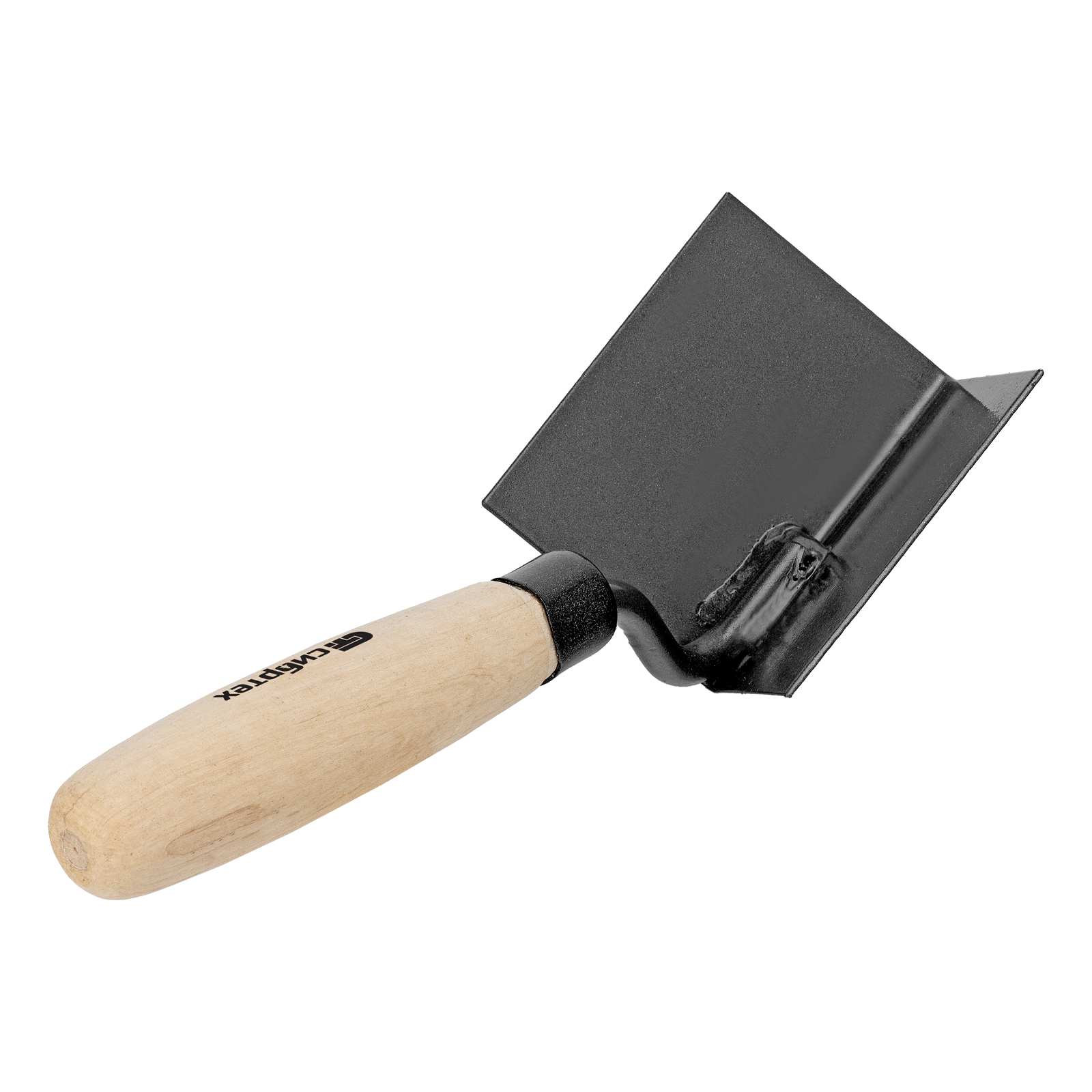 Стальная угловая кельма Сибртех 86307 размером 80 х 60 х 60 см, с буковой ручкой, используется для формирования внутренних углов. Позволяет аккуратно наносить и равномерно распределять раствор, благодаря чему угол получается ровным и гладким. Пригодится для проведения строительно-отделочных работ.