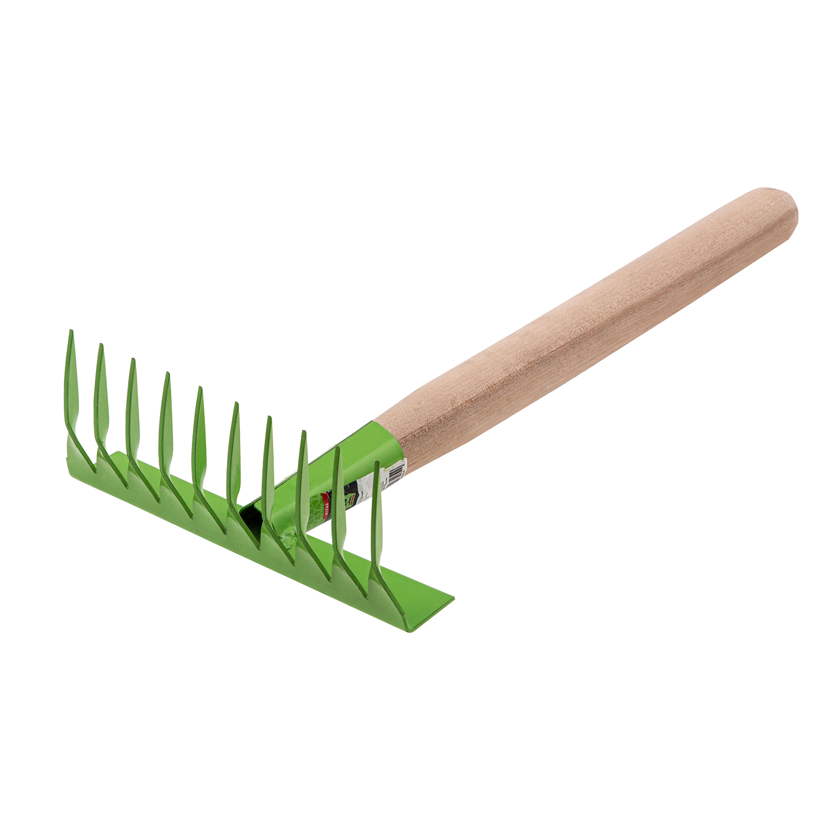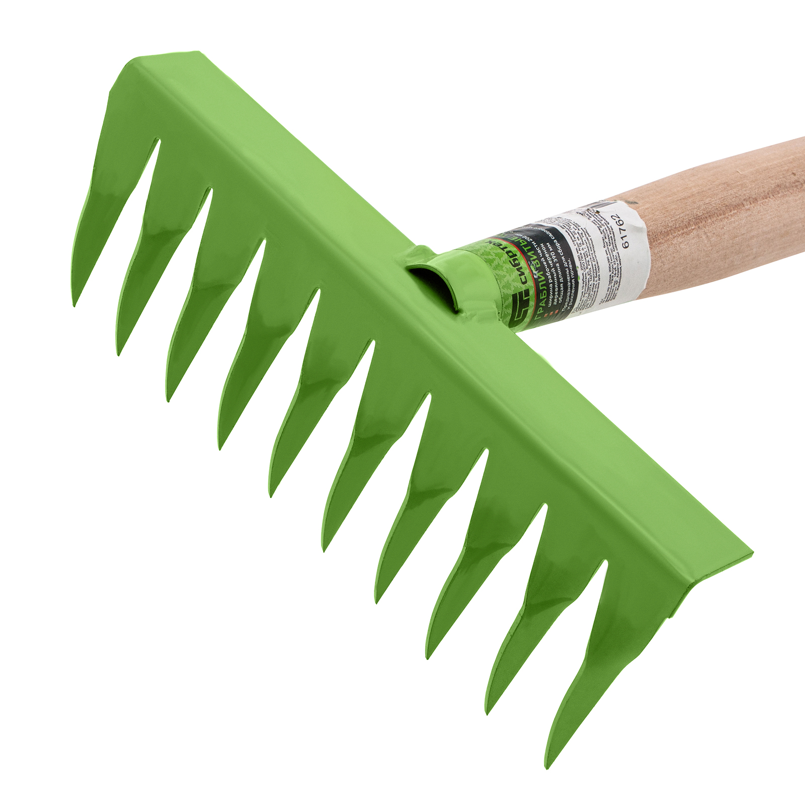 - Прочность и долговечность — рабочая часть с тулейкой выполнены из конструкционной углеродистой стали, грабли отличаются хорошей сопротивляемостью нагрузкам.