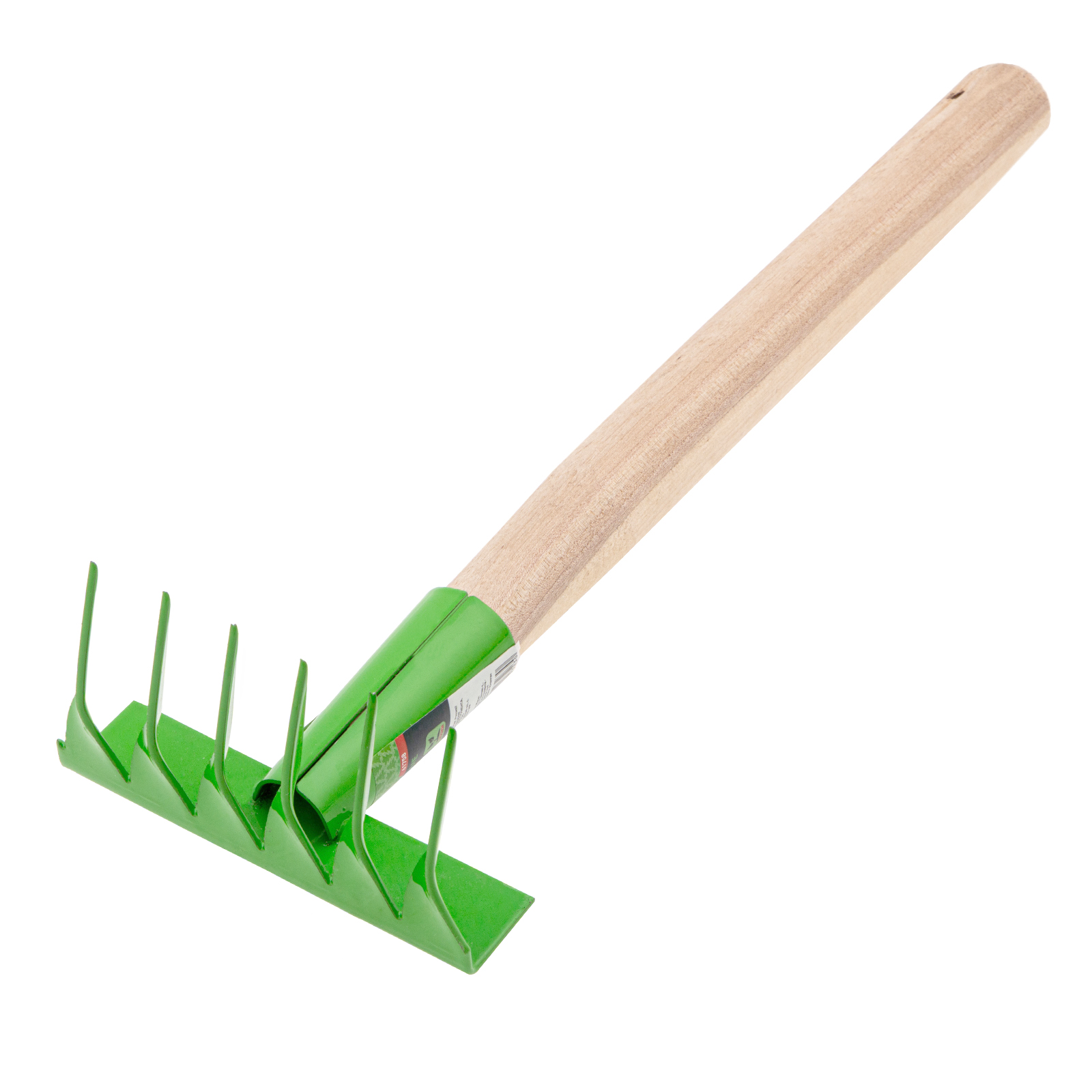 - Прочность и долговечность — рабочая часть с тулейкой выполнены из конструкционной углеродистой стали, грабли отличаются хорошей сопротивляемостью нагрузкам.