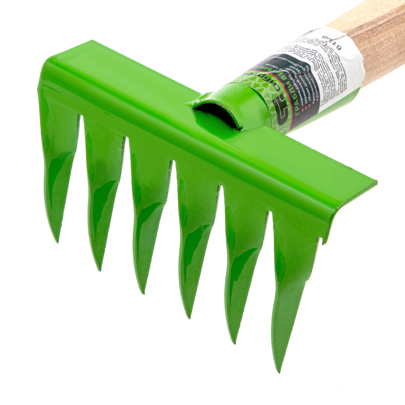 Витые 6-зубые грабли Сибртех АГРОНОМ 61758 размером 120 х 390 мм, стальные, с деревянной рукояткой, служат для проведения садовых работ на небольших участках земли. Используются для рыхления грунта, подходят также для уборки мусора с грядок и клумб. Инструмент полностью готов к эксплуатации, т. к. поставляется в сборе с деревянной рукояткой.