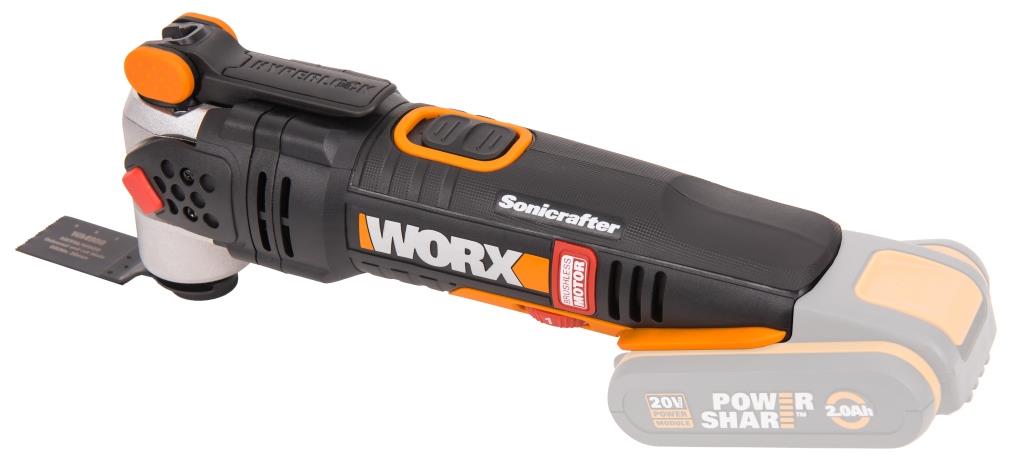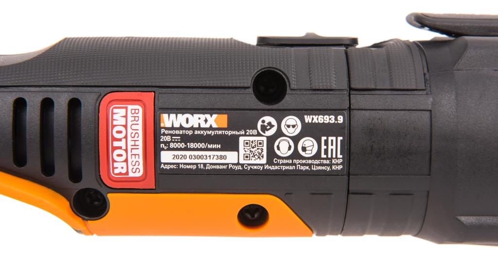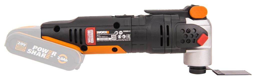 WORX WX693.9 - это универсальный инструмент для проведения ремонтно-строительных работ. Компактный аккумуляторный реноватор пилит, режет, шлифует и выполняет множество полезных функций. АКБ и ЗУ в комплект не входят! Многофункциональность Заменяет большинство популярных инструментов, экономя бюджет и место для хранения. Универсальная алюминиевая база совместима с насадками большинства производителей, которых насчитывается более 50 000. Hyperlock Аккумуляторный реноватор позволяет максимально быстро переключаться между задачами. Система Hyperlock обеспечивает надежную фиксацию оснастки и позволяет менять насадки без использования дополнительных инструментов. Microsonic В отличие от обычной дрели, насадки реноватора не вращаются вокруг своей оси, а выполняют частные колебания со скоростью 8 000 – 18 000 ходов в минуту. Технология высокочастотных колебаний Microsonic обеспечивает большую безопасность при работе и позволяет обрабатывать труднодоступные участки. Благодаря уникальной технологии Sonicrafter, WX693.9 гарантирует постоянную частоту колебаний вне зависимости от нагрузки. Удобство и надежность WORX WX693.9 оснащен светодиодной подсветкой для удобства работы в условиях недостаточной видимости. Регулировка частоты колебаний позволяет настраивать инструмент для работы с мягкими и твердыми материалами. Реноватор имеет современный бесщеточный двигатель, который получил на 25% больше мощности и увеличил срок службы на 50% в сравнении с щеточными аналогами. Питание устройства осуществляется от универсального аккумулятора WORX Powershare, совместимого со всеми инструментами производителя в линейке вольтажа и оснащенного электронной платой защиты от перегрева. АКБ и ЗУ в комплект не входят! Технические характеристикиТип двигателя: Бесщеточный мотор. Напряжение аккумулятора, В: 20. Количество аккумуляторов в комплекте: 0 Скорость без нагрузки: 8000-18000 колебаний/мин. Регулировка угла работы: 4° Светодиодная подсветка рабочей зоны. Вес без АКБ: 1,4 кг.