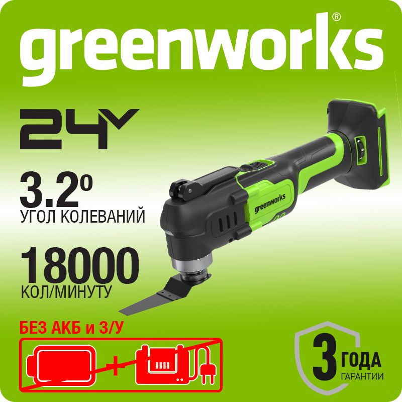 Мультитул акк. Greenworks G24MT, 24V, OQIS/OIS, 5000-18000/мин, 3,2°, LED, оснастка 13 шт, без АКБ и ЗУ (3400307)