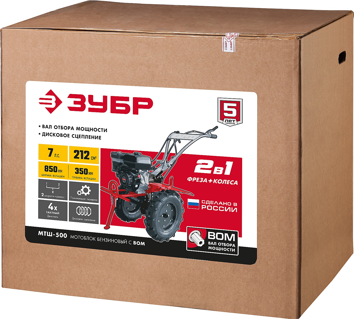 - 2 скорости вперед (понижающая, основная) и 1 назад позволяют комфортно работать на любых типах почвы