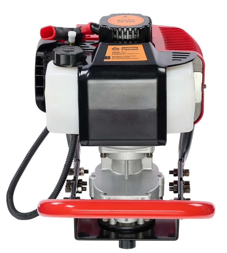 Мотобур DT-500 BURAN S00102 представляет собой профессиональный инструмент, который обеспечивает высокую производительность благодаря мощному 3-сильному двигателю. С мощностью в 2200 Вт и максимальным крутящим моментом 92 Нм, этот мотобур способен эффективно справляться с бурением на глубину до 300 см. Диаметр бура до 200 мм позволяет использовать его для различных задач, от установки заборов до бурения скважин. Двигатель объемом 58 куб.см и топливный бак на 1,2 литра обеспечивают длительную работу без необходимости частой дозаправки. При этом расход топлива составляет 458 г/кВт*ч, что делает его экономичным в использовании. Мотобур оснащен 2-тактным двигателем и рассчитан на работу одним оператором, что упрощает его эксплуатацию. Компактные габариты и вес 10,75 кг делают его удобным для транспортировки и хранения.