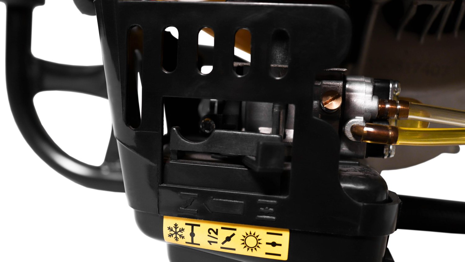 Бензобур Champion AG 352 (без шнека) построен на базе двухтактного бензинового мотора мощностью 2 лошадиные силы. Двигатель работает на смеси 92го бензина и двухтактного масла. Двигатель может работать при отрицательных температурах, для этого он снабжен воздушной заслонкой с различными режимами запуска. Передача крутящего момента производится благодаря редуктору с косозубой зубчатой передачей. Двигатель и редуктор располагаются на прочной стальной раме. Ручка газа выведена на рукоятку. Работать можно как вдвоем, так и одному. Вес бензобура чуть менее 10ти кг. Объем бака составляет 0,98 литра, этого хватает примерно на 1-1,5 часа работы, в зависимости от нагрузки. Бензобур Champion AG 352 (без шнека) отличная бюджетная модель для людей желающих сэкономить средства на установке заборов и ограждений.