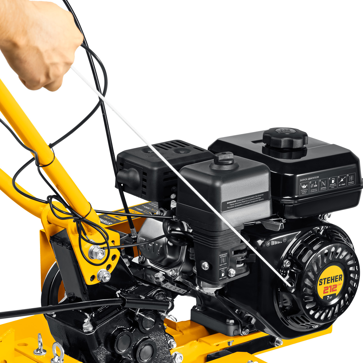 - Рукоять мотоблока с возможностью регулировки по вертикали делает управление более комфортным