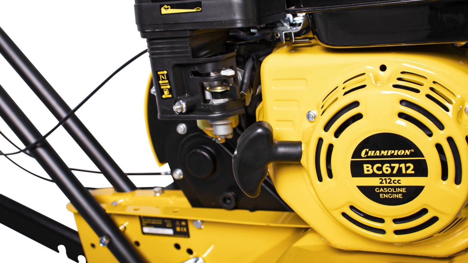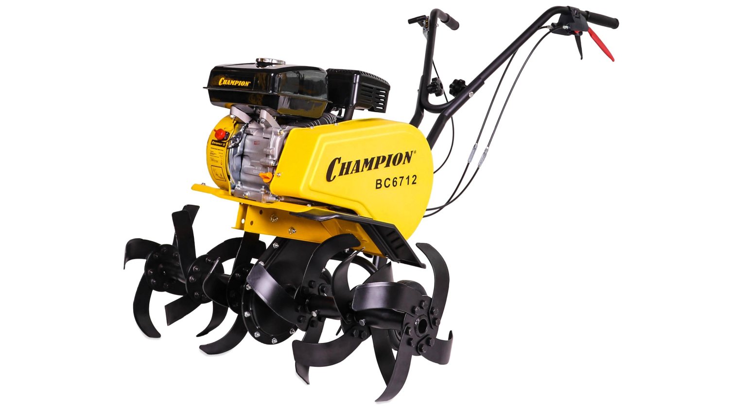 Champion BC6712 имеет реверс (задний ход) — что удобно при заглублении в плотную почву и улучшает манёвренность на ограниченных участках. Благодаря набору совместимого навесного оборудования (плуг, окучник, рыхлитель, картофелевыкапыватель), его функциональность значительно расширяется.