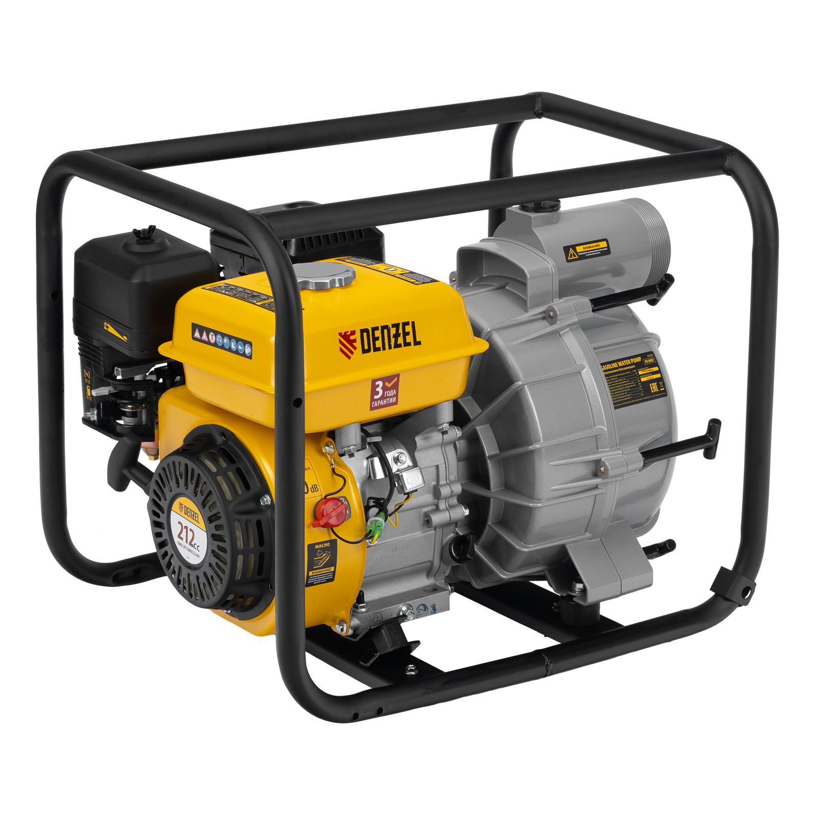 Мотопомпа бензиновая для грязной воды PX-80D7, 7 л.с., 3", 1300 л/мин, глуб 8 м,напор 30 м// Denzel
