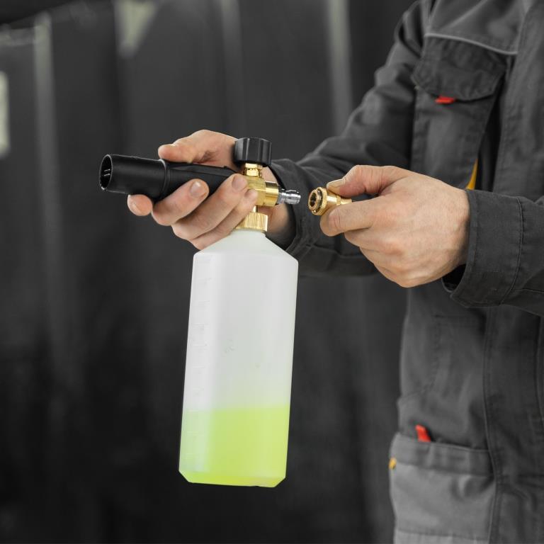- Эффективное очищение — возможно использование моющих средств, для этого предусмотрен специальный бачок с насадкой пеногенератора.