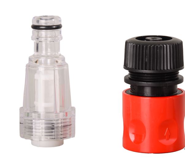 В комплекте мойки высокого давления предусмотрены фильтр для очистки поступающей воды, две сменные форсунки для широкой поверхности и для очистки от въевшейся грязи пеногенератор для мытья с использованием специальных шампуней.