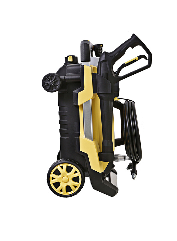 В конструкции мойки предусмотрено 4 колеса: 2 основных для перемещения в вертикальном положении за ручку и 2 дополнительных поворотных для перемещения в горизонтальном положении за шланг в след за пользователем.