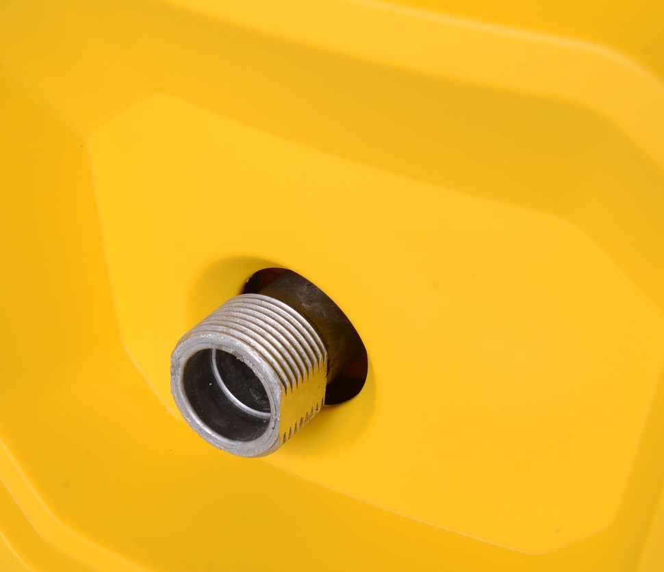Мобильность устройства обеспечивают колёсики, а прочный пластиковый корпус гарантирует долговечность. Подключение шланга к помпе осуществляется через разъём диаметром ¾ дюйма.