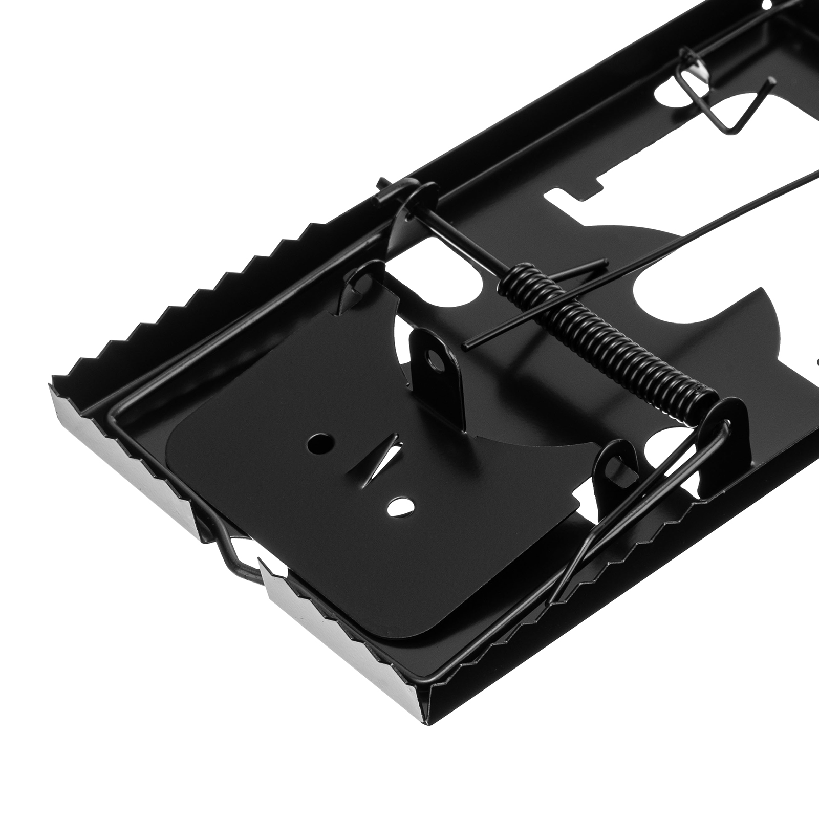 - Эффективность — крысоловка оснащена мощной пружиной, а по краям основания имеются острые зазубрины, поэтому попавшийся грызун не сможет сбежать.