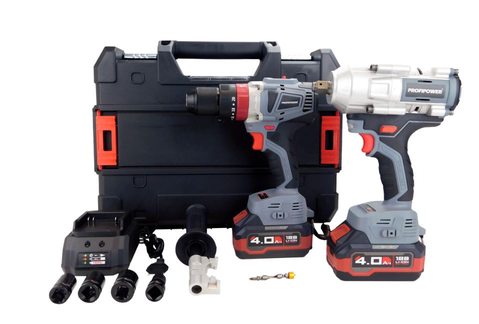 Аккумуляторный бес, НАБОР 2в1 ProfiSet-2С18 гайковерт и ударная шуруп (Li-ion-2шт, 4Ач,)