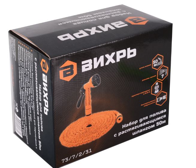 Набор для полива с растягивающимся шлангом 50м Вихрь