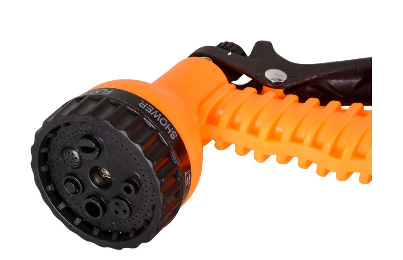 Набор для полива оснащен пистолетом-распылителем с 7 режимами, который позволяют выбрать нужный режим полива в зависимости от потребностей растений. Кроме того, он имеет быстросъемные соединители и адаптер-переходник для удобства подключения.