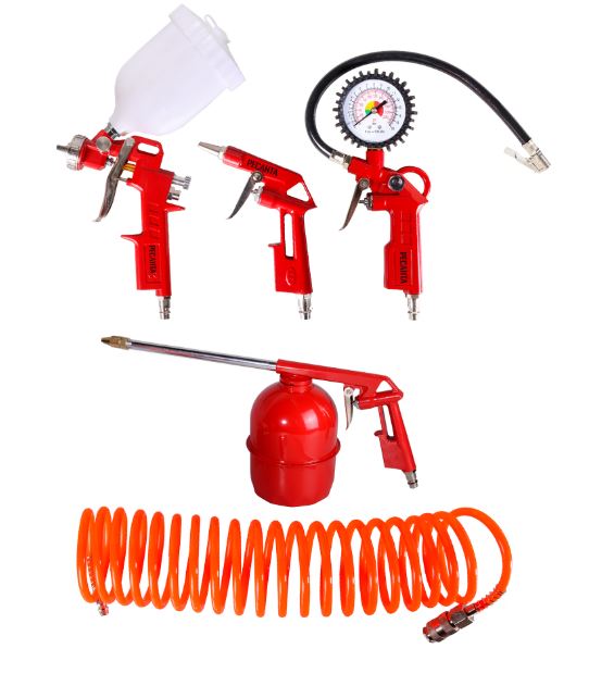 Этот набор позволит выполнить широкий спектр работ от окрашивания поверхностей и накачки шин до нанесения вязких составов и очистки деталей сжатым воздухом.