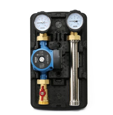 Насосная группа ZOTA с прямым контуром представляет собой готовый комплект арматуры и предназначена для присоединения контура радиаторного отопления, бойлера, вентиляции. Температура поступающего теплоносителя в контуре равна температуре теплоносителя в распределительном коллекторе. Группа оснащена шаровыми кранами с термометрами, присоединительной арматурой.