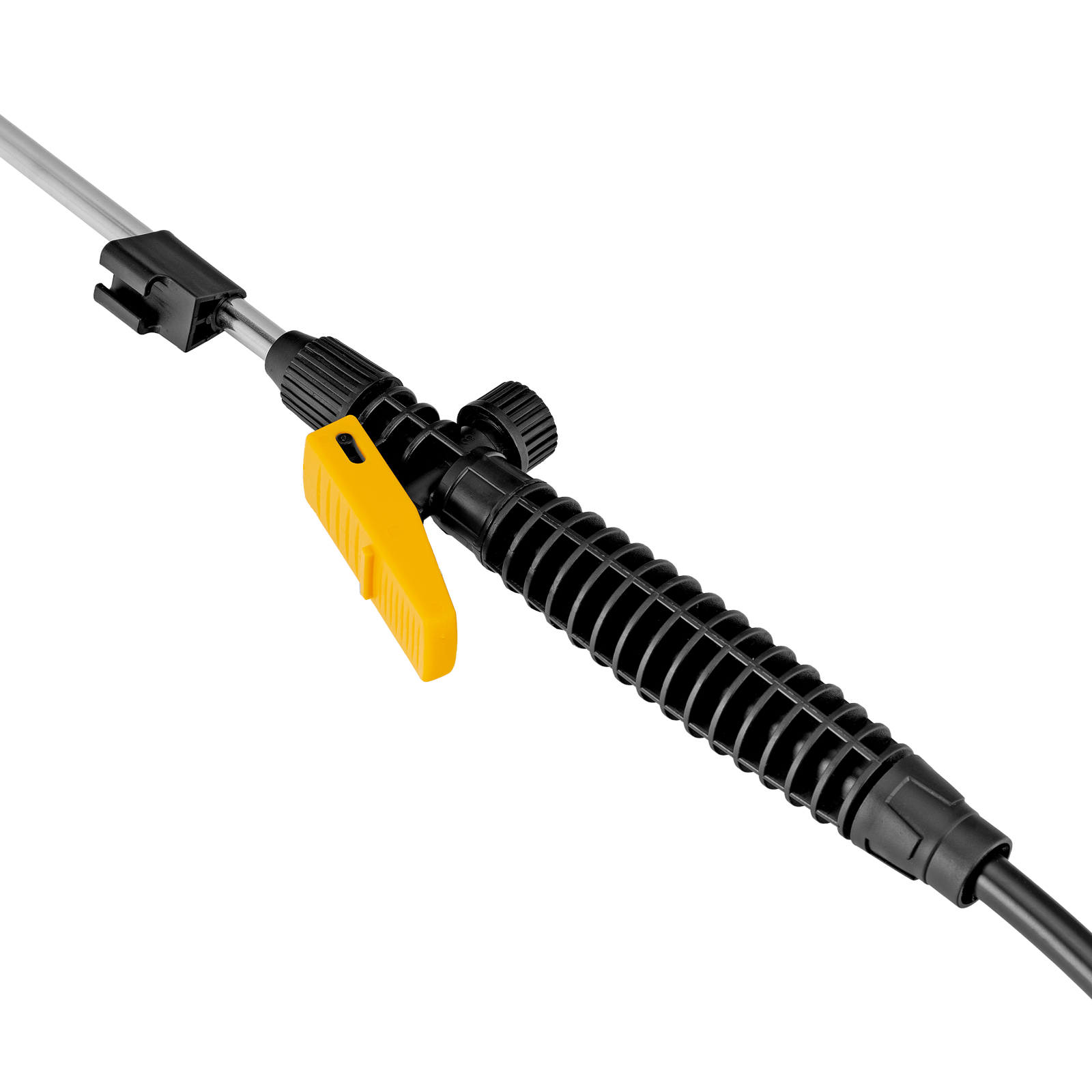 - Телескопическая штанга 380-630 мм — пользователь сможет с легкостью обрабатывать отдаленные и высоко расположенные участки.